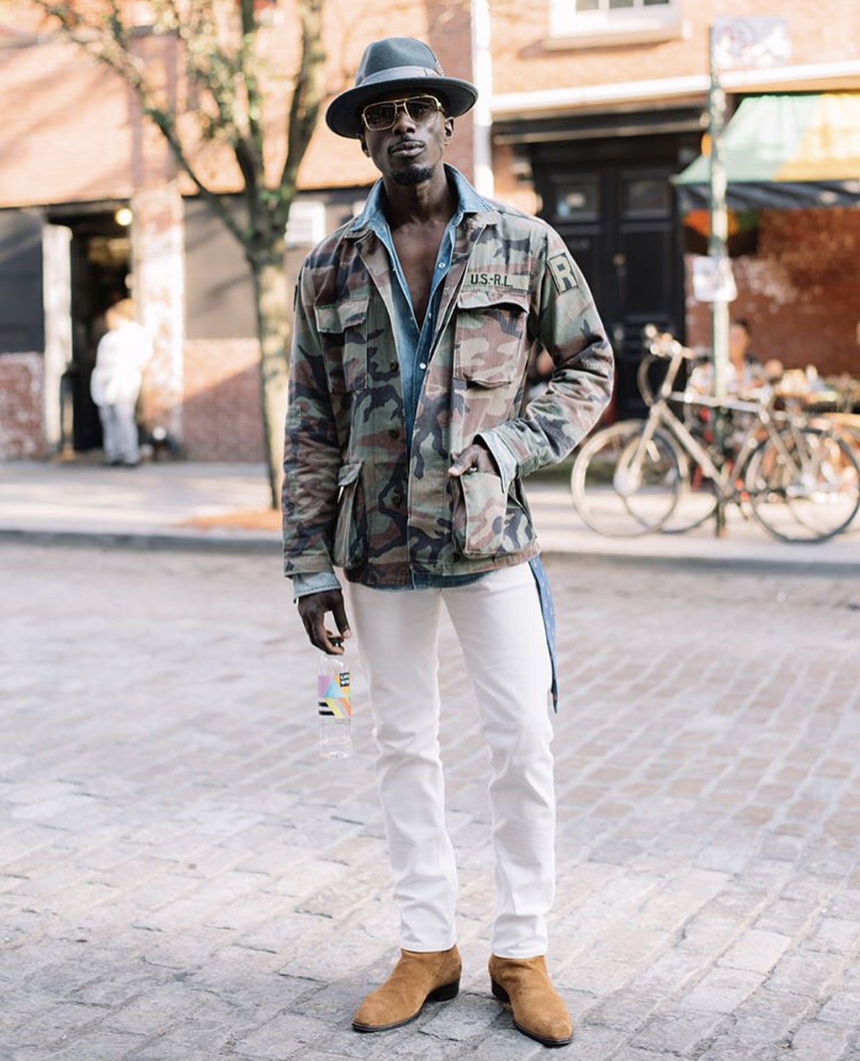 تضفي السترات ذات الطراز العسكري الوحشية والكاريزما على صورة الرجل. لإنشاء مجموعة أنيقة للمدينة معهم ، يكفي اختيار بنطلون جينز أسود ضيق أو بناطيل سبور مع جزمة من جلد الغزال تشيلسي ، وقميص أبيض بالخارج ، وحقيبة ضخمة. يمكن تخفيف سترة الخريف الزيتونية الخضراء حتى منتصف الفخذ مع بنطلون جينز أزرق بقصة مستقيمة ، وكنزة بلون المستنقعات ، وبروغ من الجلد المدبوغ.