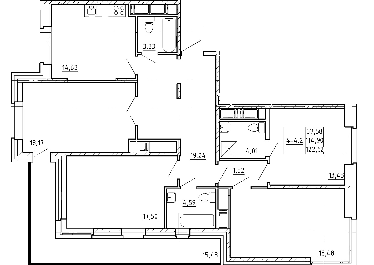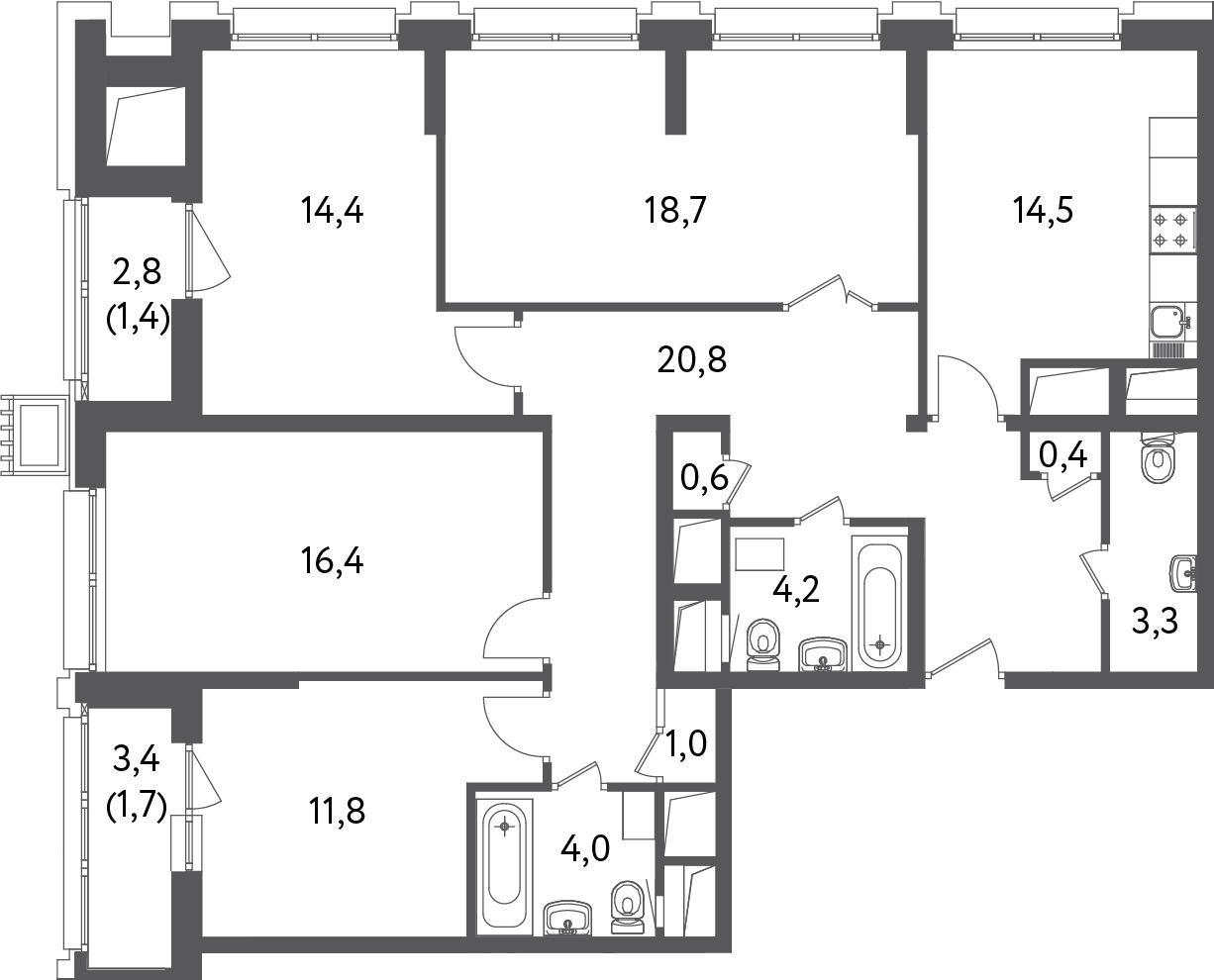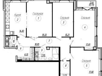 - مطبخ كبير. هذا هو الحال على الأقل في المباني الجديدة. وبالمناسبة ، يمكن جعل هذا المطبخ كمطبخ غرفة المعيشة. أصبحت هي على الفور ، الأمر يستحق الظهور هناك ، وإن كان صغيرًا ، لكن أريكة. ثم أربع غرف مجانية ، وهذا يترك المزيد من الاحتمالات.