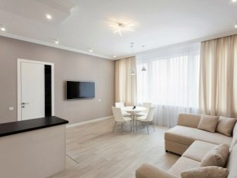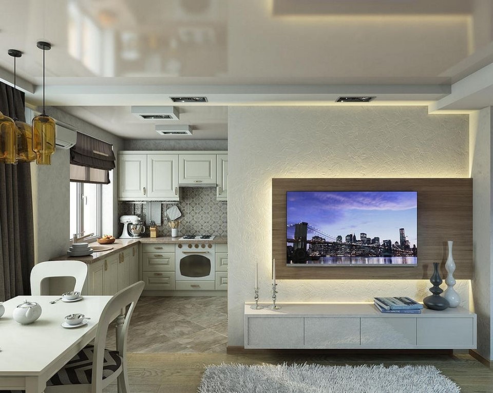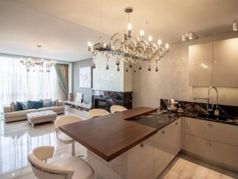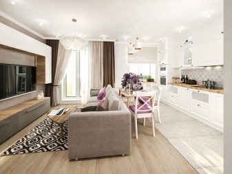 ربما يكون الخيار الأكثر شيوعًا هو الجمع بين المطبخ وغرفة المعيشة. إذا كنا نتحدث عن مبنى جديد أو "ستالينكا" ، فقد يتحول المخرج إلى غرفة فسيحة وكبيرة جدًا. إذا كانت الأسرة تحب قضاء الكثير من الوقت معًا وكان الشخص المسؤول عن الغداء يريد رؤية الباقي في غرفة المعيشة ، فهذا خيار رائع. لعقود عديدة ، عاش شعبنا في أماكن ضيقة ، يحلمون بشقق "كما هو الحال في الغرب" ، حيث يبدو أن المبنى يغمره الهواء والضوء. وهكذا ، فإن "أربعة" تجعل من الممكن إجراء مثل هذه التجربة الداخلية ، مع عدم حرمان الشقة من غرف خاصة معزولة.