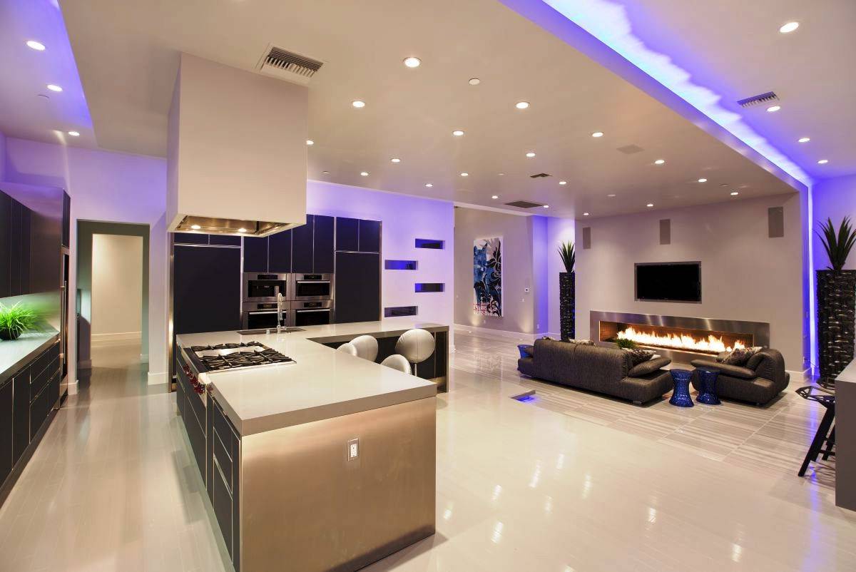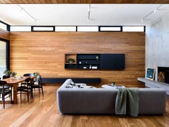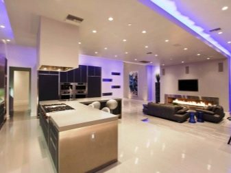 - كيف يمكن أن تبدو المساحة المشتركة للعائلة. من الواضح أن الغرف المعزولة تؤدي منه وإليه. يتم إنشاؤه أيضًا من خلال الجمع بين غرفة المعيشة والمطبخ مع تقسيم المناطق الأنيق.