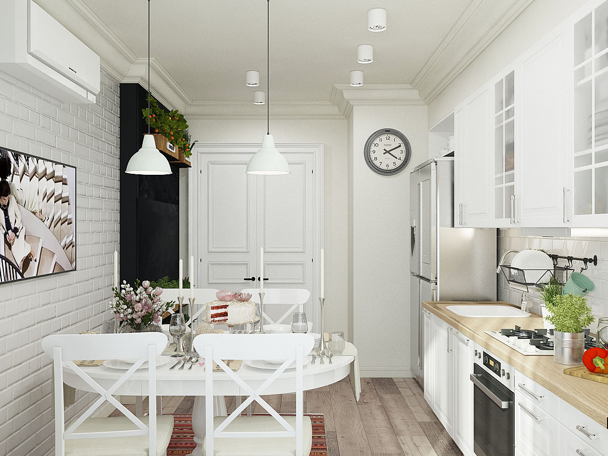 في السنوات الأخيرة ، أصبح الأبيض قائدًا ، على الأقل عدد قليل من الأشخاص اعتادوا الرجوع إليه ، ولم يفهم الآخرون كيفية ترتيب "غرفة العمليات" من المنزل أو حتى كيفية اتخاذ قرار بشأن مثل هذا اللون المتسخ. اليوم ، يختلف الموقف تجاهها ، وبالنسبة للشقة المظللة ، فإن الغرف ليست كبيرة جدًا ووجود ديكور متنوع ومشرق وملون (ليس له مكان لوضعه) يصبح اللون الأبيض هو الخيار الأكثر وضوحًا.