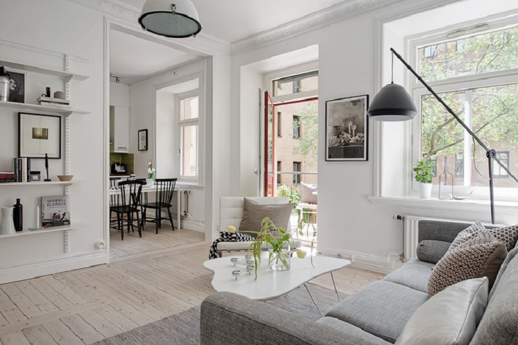 - إذا كنت تريد تصميم الشمال في منزلك ، يمكنك الجمع بين الغرف لصالح المساحة. لون صغير ، وديكور صغير ، ولكن ما مدى سهولة التنفس في غرفة مشرقة وممتعة "فاترة".
