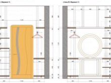 إذا كان هناك مساحة كبيرة في الغرفة لخزانة الملابس ، وكان طول الجدار المركزي مترًا ونصف المتر على الأقل ، فيمكنك في هذه الغرفة وضع مرآة قائمة بذاتها وعثماني وحتى مكواة. مجلس. ولكن إذا كانت غرفة الملابس صغيرة ، على سبيل المثال ، في حدود 3-4 أمتار مربعة. م ، فمن الأفضل هنا التفكير في الترتيب الأكثر إحكاما للأثاث ، وكذلك تركيب باب مقصورة. اتضح أن جميع الرفوف والشماعات اللازمة ستكون موجودة على الفور خلف أبواب المقصورة.