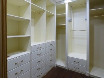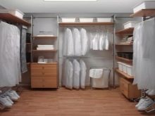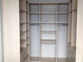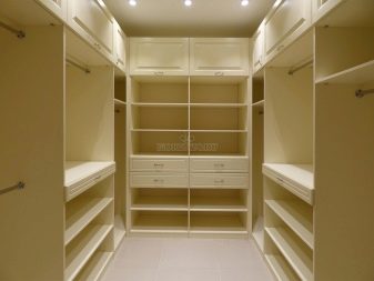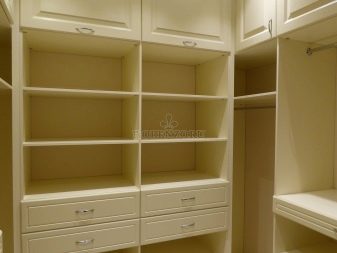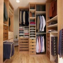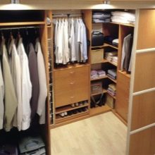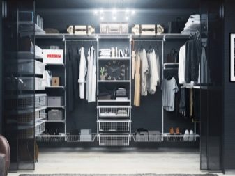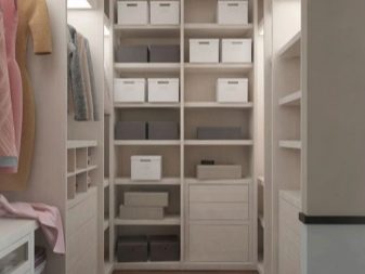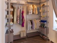 يمكن أن تكون خزانة الملابس أنثوية أو ذكورية بالكامل ، ويمكن أيضًا تقسيمها إلى نصفين إلى عدة مقصورات إذا تم تجهيز غرفة الملابس ، على سبيل المثال ، للزوجين. وبالتالي ، سيتمكن الجميع من التفكير في المحتوى الضروري لأنفسهم بناءً على الأشياء التي يمتلكها الشخص أكثر. إذا كانت الأسقف في الغرفة منخفضة ، ولكنك تريد استخدام أكبر مساحة ممكنة ، فيمكنك التفكير في تركيب خزانات ورفوف مفتوحة أسفل السقف مباشرة.
