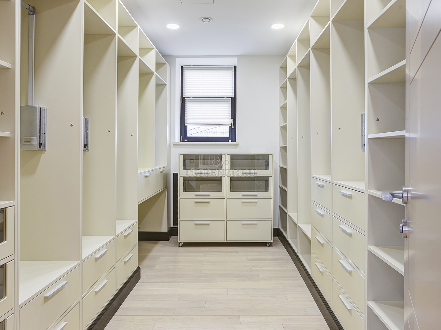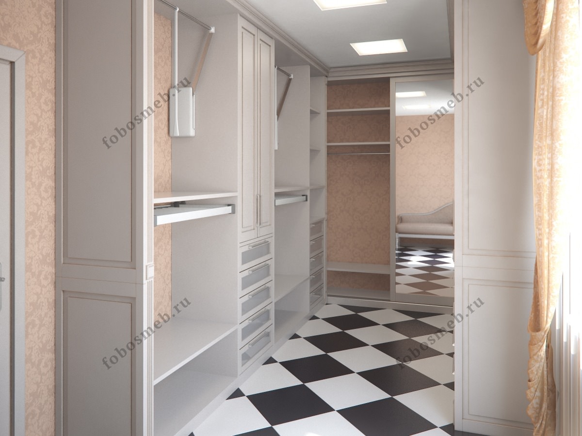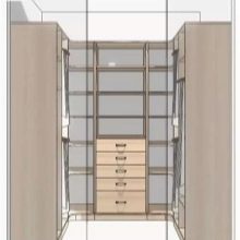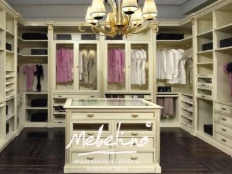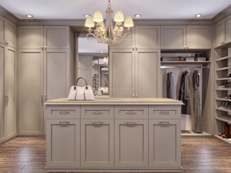 حتى الآن ، لن يكون من الصعب ترتيب غرفة تبديل ملابس على شكل حرف U. إذا كانت الغرفة كبيرة ، فيجب الانتباه إلى التصميم الداخلي الكلاسيكي ، والذي يتضمن استخدام الأثاث والواجهات بألوان طبيعية.