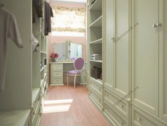 ينصح الأشخاص الذين تصنع منازلهم على طراز بروفانس بتجهيز غرفة تبديل الملابس بنفس الأسلوب. تبدو غرف الملابس هذه لطيفة للغاية وجديدة.