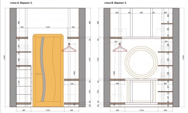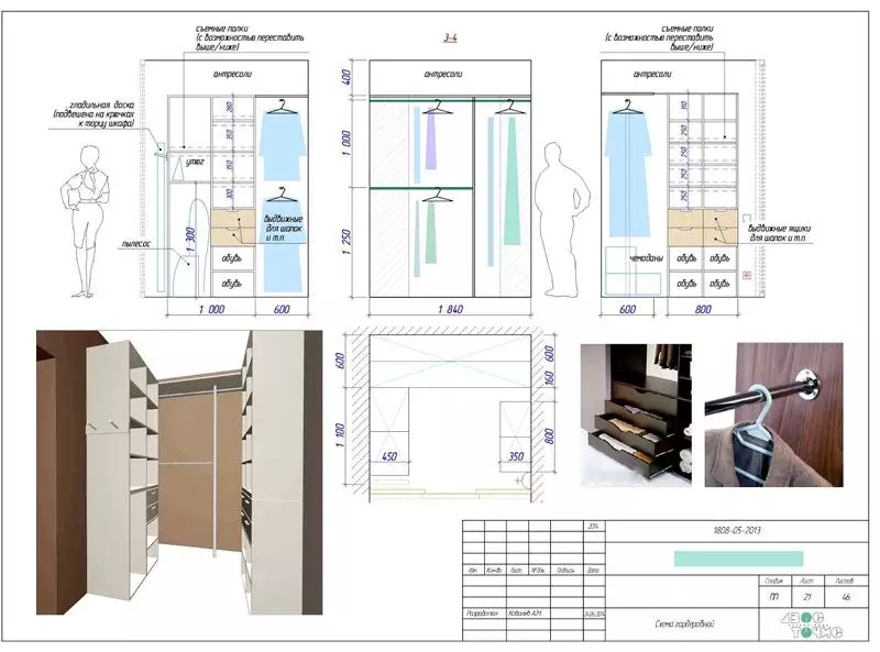 يجب أن يبدأ تخطيط غرفة الملابس بقياساتها ، وكذلك إعداد المشروع والرسومات اللازمة. يمكن القيام بذلك بشكل مستقل أو بمشورة أخصائي.