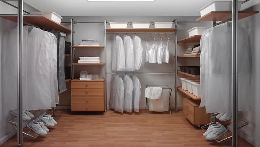 إذا كان لدى المالك الكثير من الأشياء التي يجب تعليقها ، بما في ذلك الملابس الخارجية والفساتين والبدلات ، فمن الأفضل العناية بعدد كافٍ من القضبان المعدنية.مصممة خصيصا لشماعات الملابس. يمكن وضع هذه القضبان على جوانب الحائط مع حجرات تخزين أو في المنتصف مباشرة.