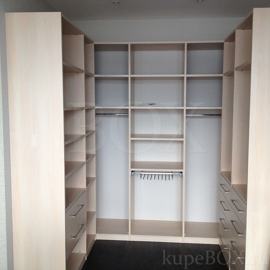 يمكنك استخدام تصميم خزانة الملابس على شكل حرف U في كل من الغرف الصغيرة والكبيرة. في هذه الحالة ، تشارك 3 جدران من الغرفة.