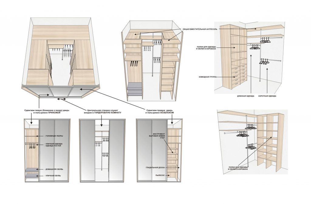 لجعل خزانة الملابس مريحة ودافئة وعملية في الاستخدام ، يجب أن تفكر مسبقًا في مكان وعناصر الأثاث التي ستكون موجودة فيها.
