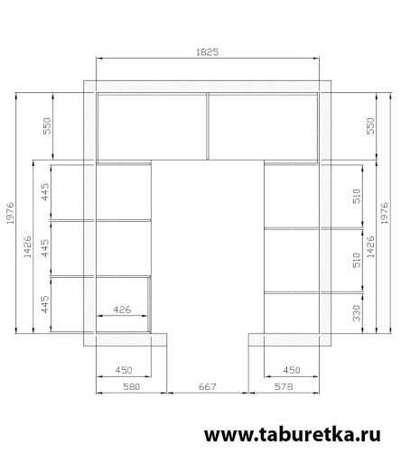 وأيضًا مع مثل هذا التصميم ، يمكن تركيب خزانة ذات أدراج في وسط غرفة كبيرة.