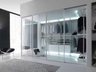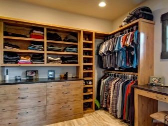 أسهل طريقة لتجهيز غرفة تبديل الملابس هي في غرفة صغيرة منفصلة أو خزانة. هناك غرفة جاهزة ، والتي تبقى مليئة بأنظمة التخزين المختلفة ، ولتنفيذ الإضاءة.