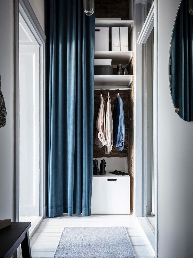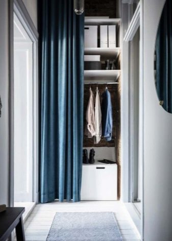 إذا لم يكن هناك غرفة منفصلة لغرفة تبديل الملابس ، فيمكن تسييجها بشاشة أو ستائر أو جدار زائف في غرفة المعيشة أو غرفة النوم. لكن يجب ألا يقل حجم "الغرفة" الناتجة عن 1.5-1.7 متر مربع. م أقل هو ببساطة غير عملي ، سيكون بالفعل خزانة ملابس مدمجة. يمكنك وضع سياج على جدار أو زاوية بأكملها. ربما توجد منافذ أو ممر مسدود أو زوايا. يمكن أيضًا تحويلها إلى غرف تبديل ملابس.