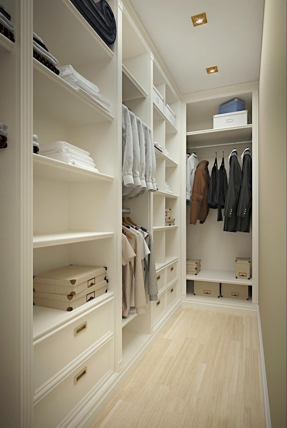 هناك ثلاثة أنواع من تصميمات غرف الملابس: