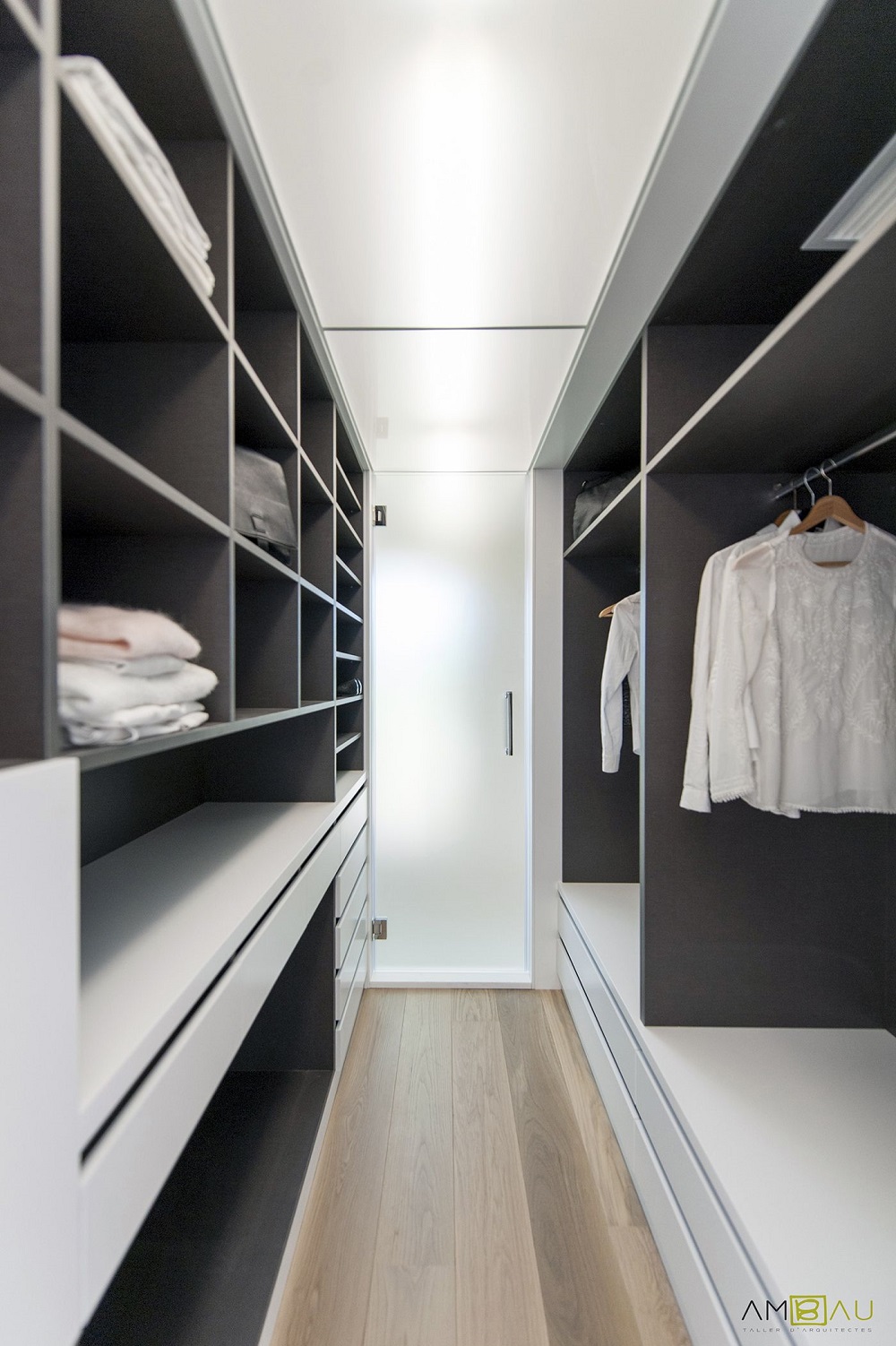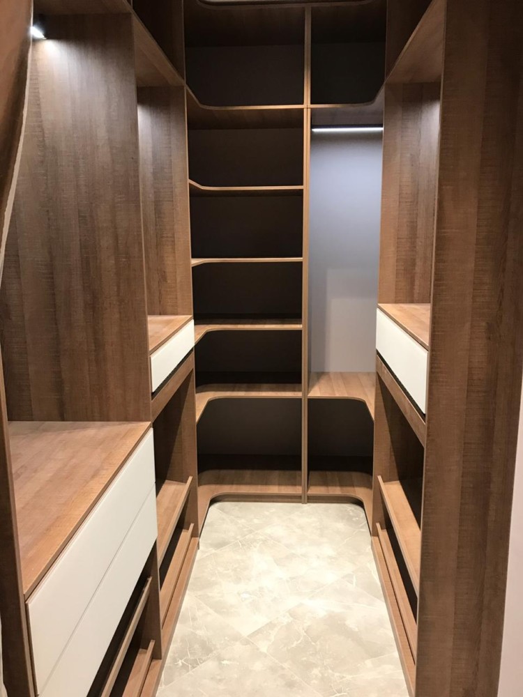 يمكن أن تكون بأحجام مختلفة ، أن تكون غرفة مستقلة أو قسمًا مسيّجًا في غرفة المعيشة. وعلى الرغم من أن خزانة الملابس الضيقة تبدو أشبه بخزانة ملابس مدمجة ، إلا أنها تحتوي على أنظمة تخزين أكثر فاعلية ، مثل الأرفف الموجودة أسفل السقف.