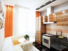 بالنظر إلى حقيقة أن المطبخ في الشقق المكونة من غرفة واحدة لا يحتوي على الكثير من المساحة الحرة ، اختر أثاث المطبخ بعناية حتى لا تتناثر من الداخل. من الأفضل شراء المنتجات المصنوعة من مواد طبيعية لأنها أكثر أمانًا وجاذبية.