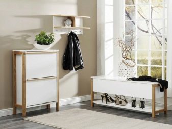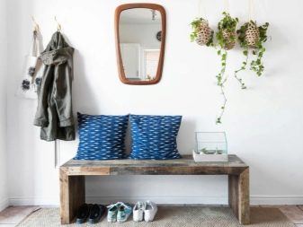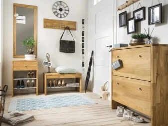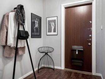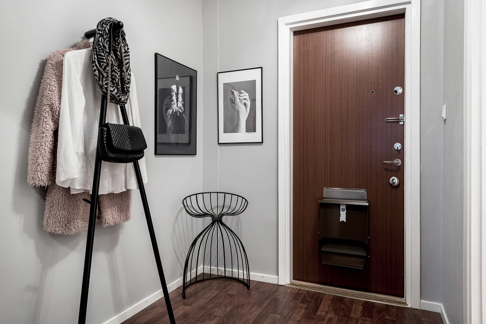 - شماعات حائط أو أرضية لملابس خارجية... يمكن أن تكون معدنية أو خشبية ، مضغوطة نوعًا ما ، بدون تفاصيل براقة. في بعض الأحيان ، تعمل قرون الحيوانات ، المثبتة على الحائط ، بهذه الصفة.