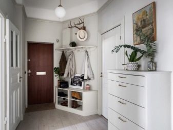 المدخل على الطراز الاسكندنافي هو اتجاه عصري يسمح لك بإعطاء المنزل بأكمله سحرًا خاصًا لسلام وراحة الخادم... في هذه الحالة ، تم تصميم التصميم الداخلي للممر في الشقة بألوان هادئة ؛ حيث يتم اختيار الأثاث باللون الرمادي والألوان المحايدة الأخرى ، مما يجعل الغرفة الصغيرة الضيقة أكثر اتساعًا والأخرى الكبيرة أكثر انسجامًا. يمكنك إضافة الظلال الاسكندنافية إلى أي مدخل على الإطلاق - من المهم فقط اتباع بعض القواعد.