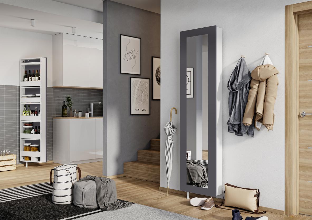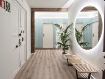- مرآة حائط أو أرضية كبيرة... بالإضافة إلى الاستخدام الوظيفي البحت ، يساعد هذا العنصر في توسيع المساحة بصريًا. إذا كنت بحاجة إلى وضع خزانة ملابس في الردهة ، فيجب عليك إخفاؤها خلف الأبواب ذات المرايا.