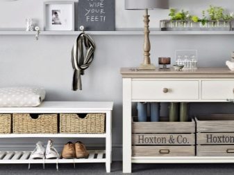 - سلال بأشكال وأحجام مختلفة. يتم تعليقها على الجدران لتصبح حاملات قفاز ، يتم تثبيتها عند الباب لتخزين المظلات وعصي المشي. تستخدم كعناصر زخرفية لتخزين الأشياء الصغيرة المختلفة.