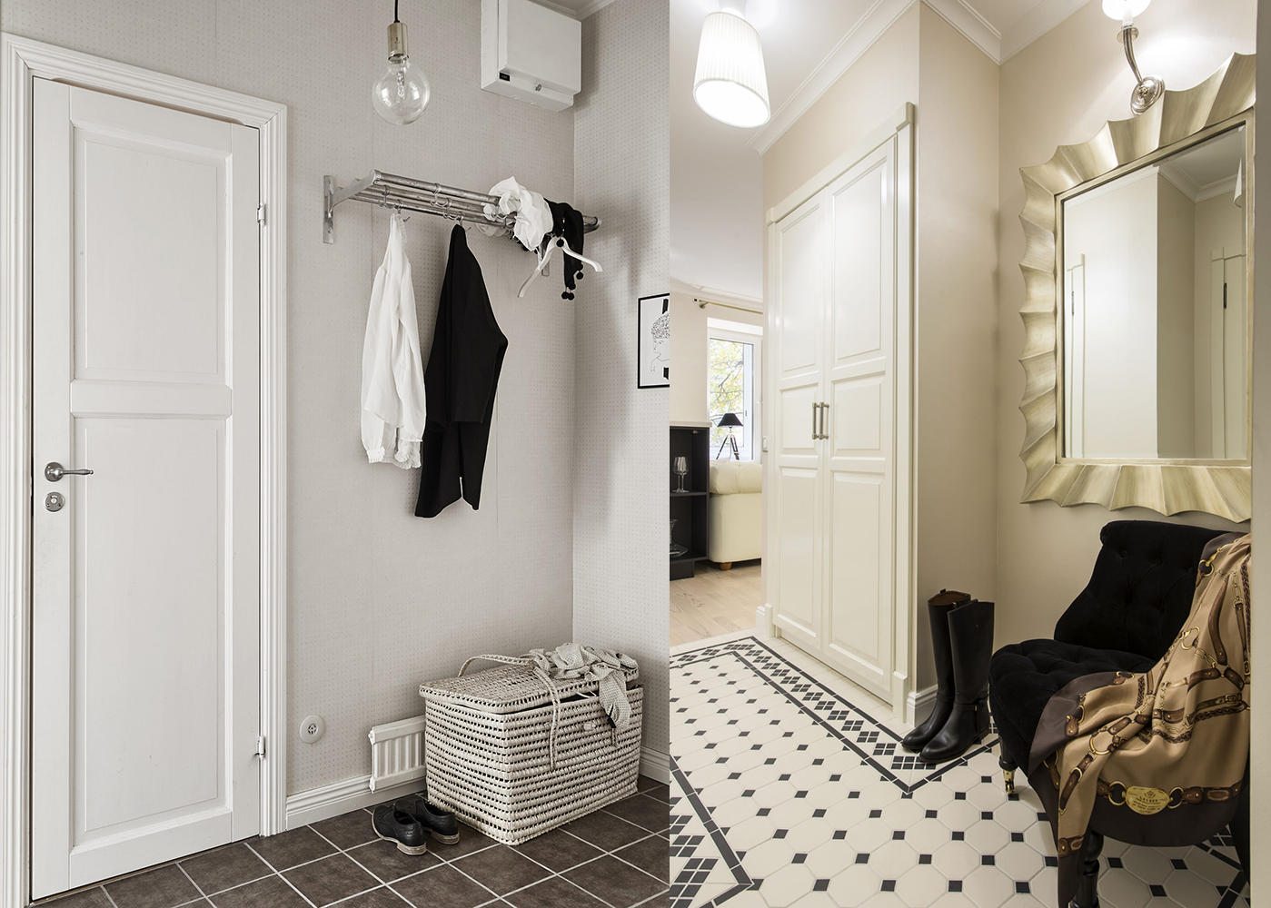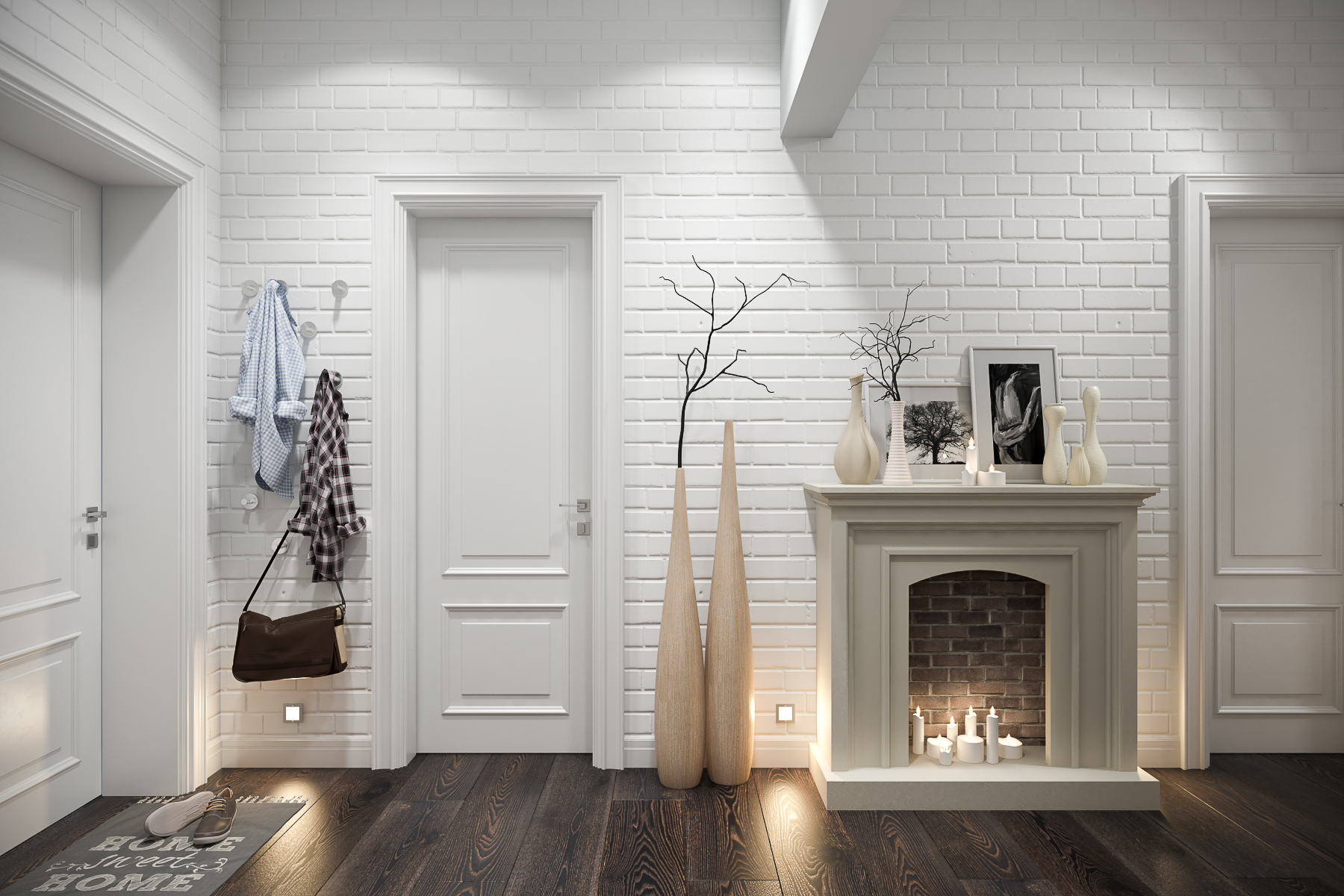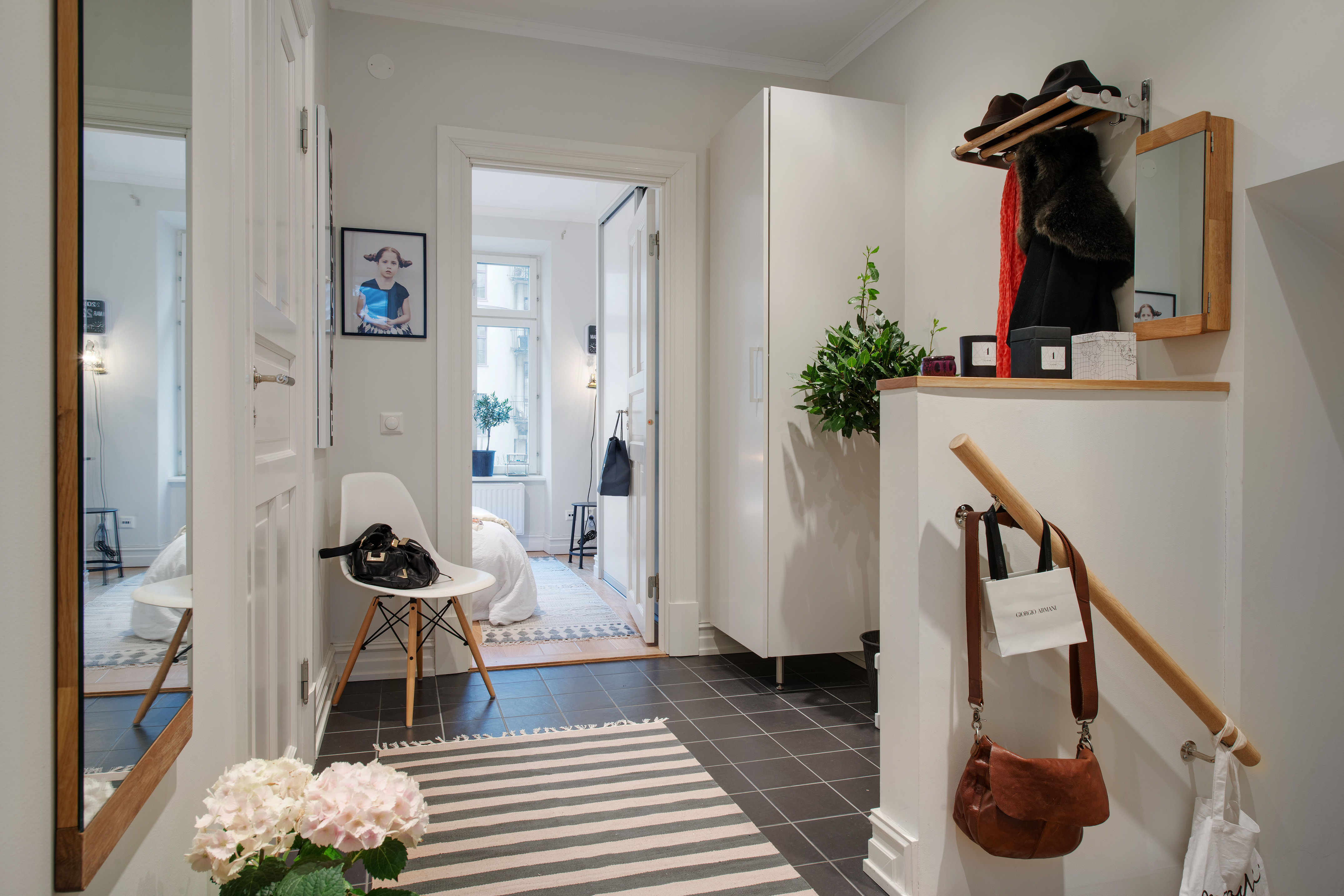 هذا لا يحتاج إلى أن يكون محدودا. يتيح لك الطراز الاسكندنافي إنشاء مساحات داخلية مريحة حتى في منطقة صغيرة... يمكن أن تمتلئ الممرات بالتحف والموروثات العائلية ، مع التركيز على ترتيب المنزل. على سبيل المثال ، يمكنك وضع الشموع في حوامل نحاسية أو برونزية على طاولة ، وساعة منبه بآلية لف في علبة مضيئة.