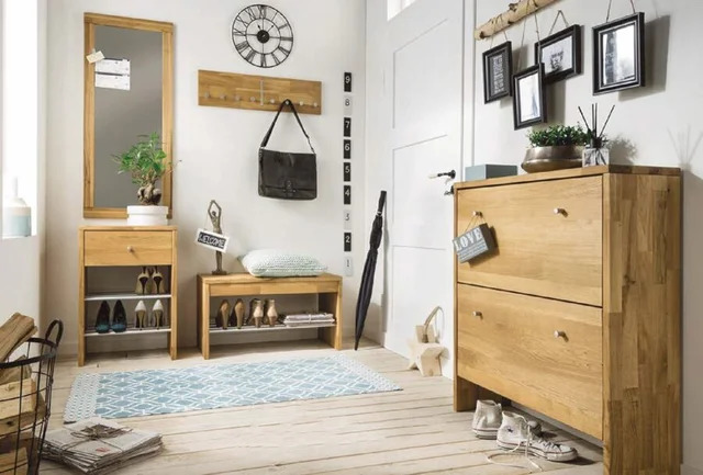 يتضمن اختيار الأثاث للممر ذي الطراز الاسكندنافي استخدام عناصر وظيفية حصرية ، دون تشويش الغرفة بتفاصيل غير ضرورية. يتم اختيار الأثاث ضيقًا ومضغوطًا وبدون تفاصيل طنانة ووفرة من الملحقات. هذا ما يبدو عليه التصميم التقليدي لمفروشات المنزل.