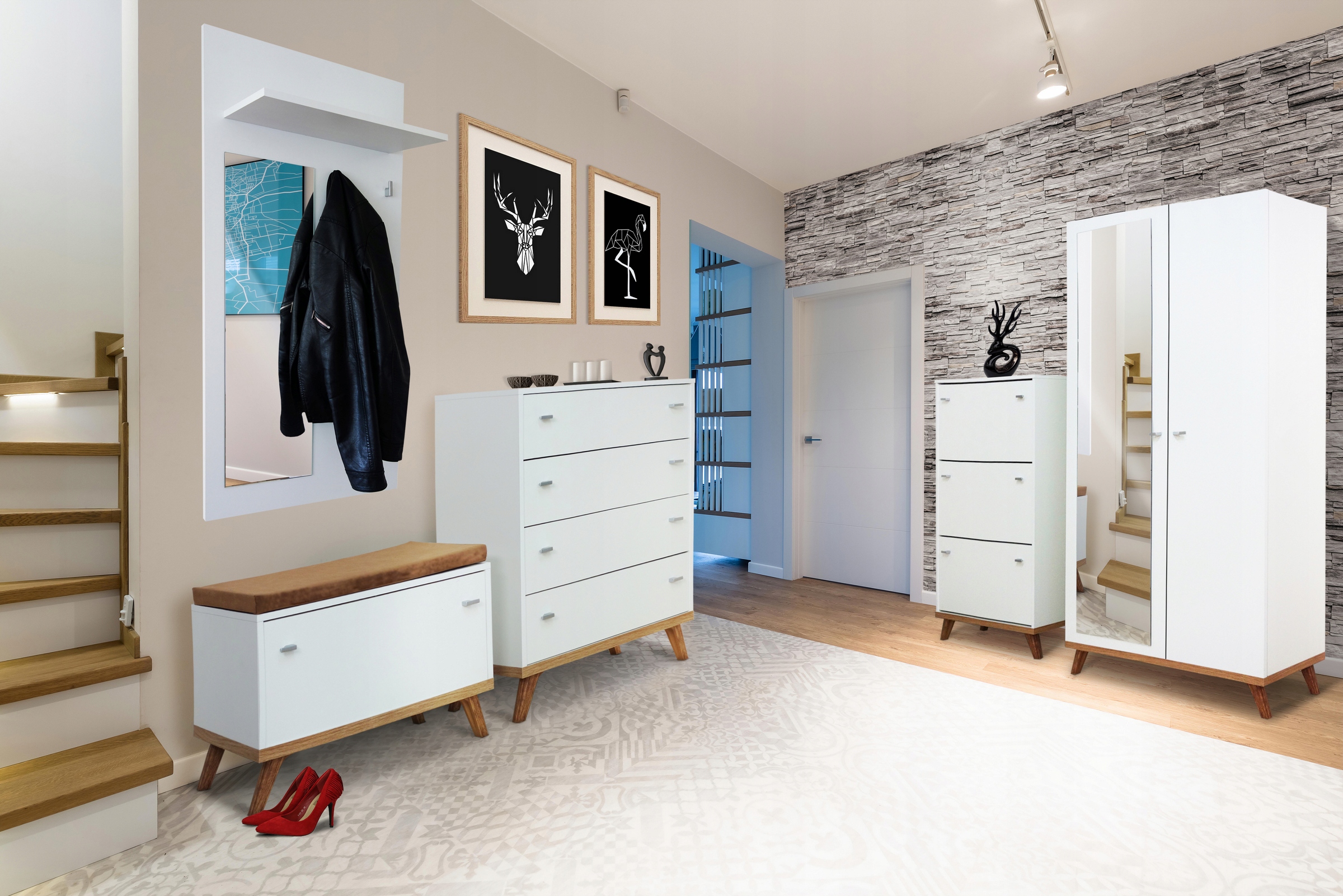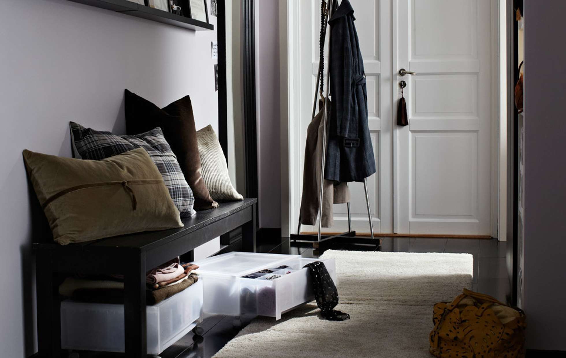 إذا كانت هناك منافذ في الغرفة ، فيمكن نقلها بعيدًا تحت نظام التخزين عن طريق إضافة رفوف مطلية بألوان متباينة - أصفر الخردل ، أسود ، فيروزي. بشكل عام ، أثاثات الردهة الاسكندنافية النموذجية قليلة جدًا ، حتى لو كانت المنطقة تسمح بتجهيز القاعة بتقسيم إلى مناطق.