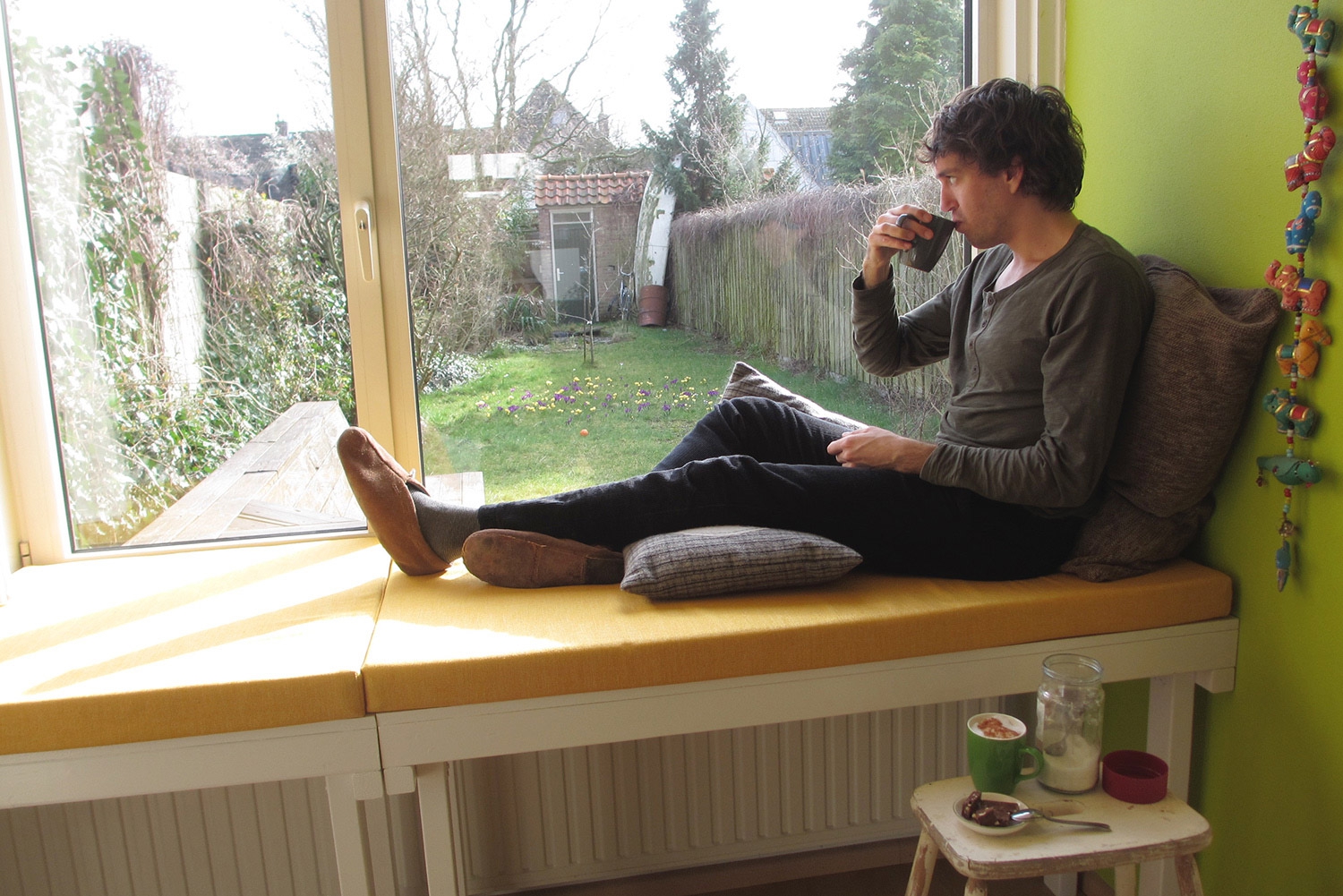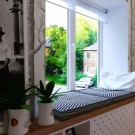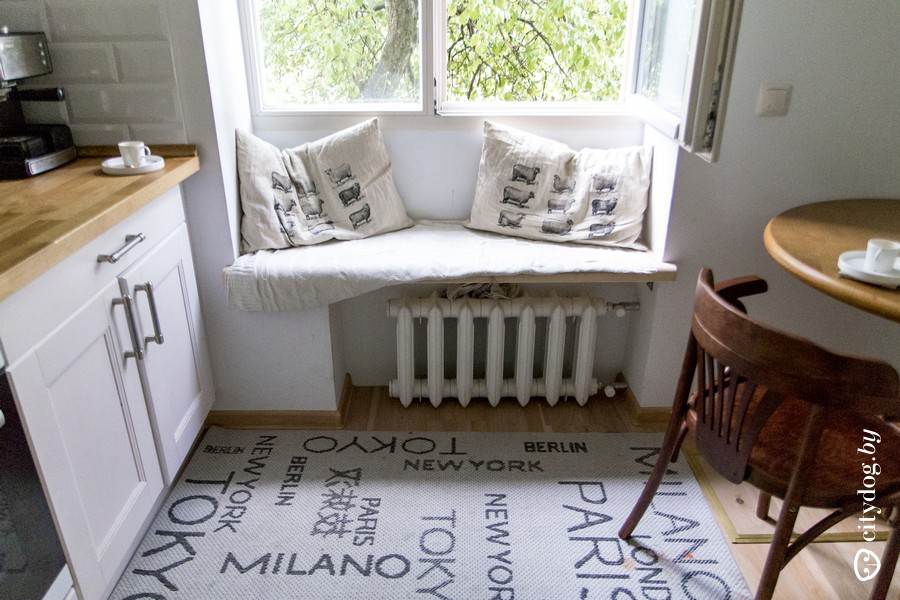 لتجهيز صوفا عتبة النافذة بيديك في المطبخ الذي يختارونه أكثر الأشياء العملية... هذه مرتبة متوسطة الصلابة ، وسائد - بكرات لإنشاء مساند للذراعين ، وسائد متينة مع أغطية قابلة للإزالة.