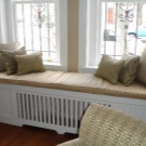 هناك أوقات يكون فيها الترتيب معقدًا بسبب استحالة نقل المشعات. في مثل هذه الحالة ، تحتاج إلى العثور على شاشات حرارية تسمح بمرور الهواء الدافئ. بالإضافة إلى ذلك ، سيكون شراء المبرد المصمم بمقعد مناسبًا.