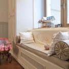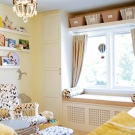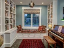 أما بالنسبة للحضانة فيختارون نسيجًا جميلًا ومناسبًا ويضعونه فوق النافذة أو يفصلون به هذه المنطقة. تم تجهيز مكتبة مدمجة في موقع الأريكة ، على سبيل المثال ، بوضعها على اللوحة الأمامية أسفل المقعد أو على الحائط الجانبي.