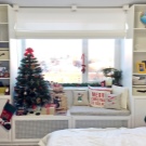 - مثال على إنشاء منطقة ترفيهية في غرفة الأطفال مع أرفف للعب ومراتب ضخمة وستائر نسيجية.