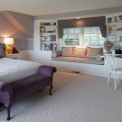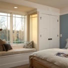إذا كانت الغرفة كبيرة ، يمكن وضع الخزائن على جوانب النافذة. سيؤدي ذلك إلى فصل المساحة عن المجالات الوظيفية الأخرى. لتجديد الإضاءة ، من المفيد إجراء شريط أو بقعة إضاءة حول محيط المنطقة.