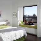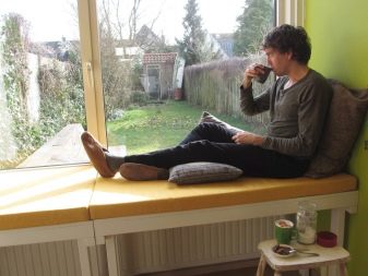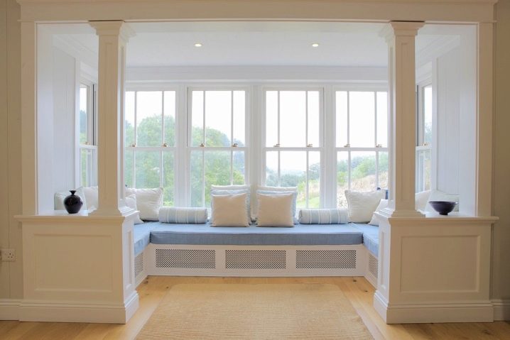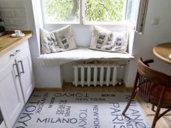 إذا رغبت في ذلك ، يمكن نقل مشعات التدفئة (إذا سمح). خلاف ذلك ، يتم تغطيتها بشاشة واقية. بالنسبة للنوافذ البانورامية ، يجب تثبيت المقاعد على المنحدرات.