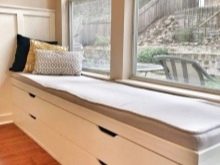 يجب تركيب نظام تخزين عملي تحت المقعد. اعتمادًا على الفروق الدقيقة في الداخل ، ليس فقط الصندوق الخشبي ، ولكن أيضًا المقعد الصلب يمكن أن يصبح منصة.