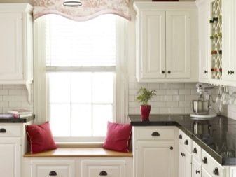 نقدم العديد من الأمثلة على الأثاث المتناغم للأريكة بدلاً من عتبة النافذة.