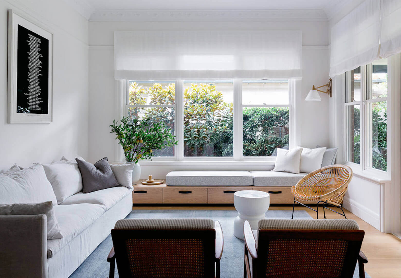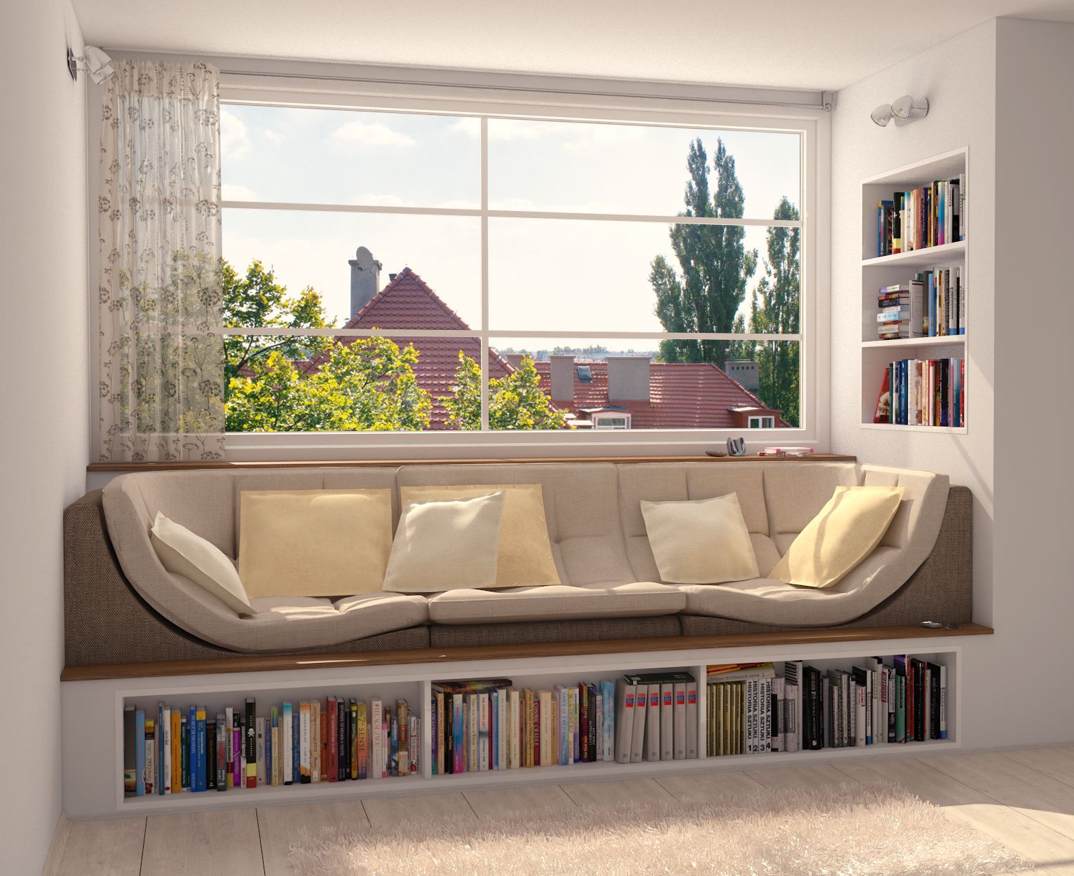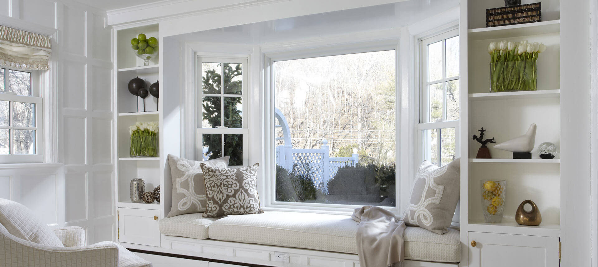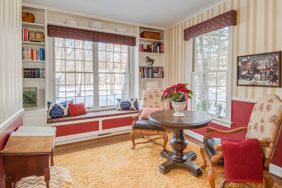 - زخرفة حافة نافذة الخليج مع إضاءة سقف منفصلة.