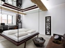 تصميم آخر مثير للاهتمام ولكنه باهظ الثمن هو سرير معلق... يتم توصيله بالسقف بكابلات خاصة ، ويمكن حتى تزويده بآلية رفع. يمكن وضعها في منتصف الغرفة وعلى الحائط. لكن ليس كل سقف يمكنه تحمل مثل هذا الحمل. يمكن أن تمتد الشقوق على طول بلاطة الأرضية ، ولا يتم استبعاد الانهيار الجزئي. بالإضافة إلى ذلك ، فإن الأسرة المعلقة ليست مناسبة للأشخاص الذين يعانون من ضعف في الجهاز الدهليزي. تميل إلى التأرجح ، وبالتالي قد يعاني الشخص النائم من مشاكل في الرفاهية. الشكاوى الأكثر شيوعًا هي الدوخة والغثيان وسواد العيون.