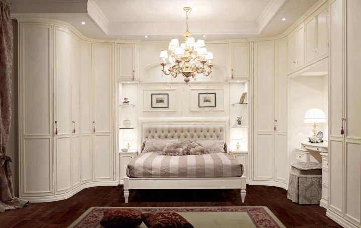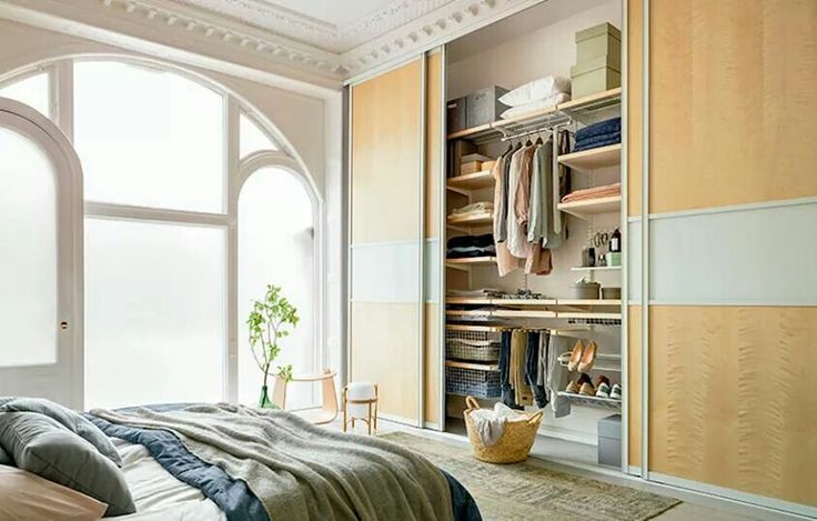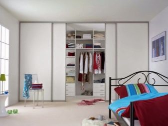 الجدران الخلفية والجانبية للخزائن هي جدران الشقة نفسها. يتم تثبيت أدلة الأبواب وتركيب الأرفف والأدراج وسكك تعليق الملابس. نظرًا لتوفير المساحة ، غالبًا ما تكون الأبواب منزلقة أو قابلة للطي (مثل الشاشة) ، ولكن يمكن أيضًا استخدام الهياكل المتأرجحة. إذا سمحت المساحة ، يمكن تحويل خزانة الملابس إلى غرفة ملابس كاملة.