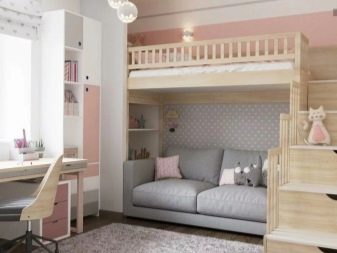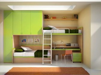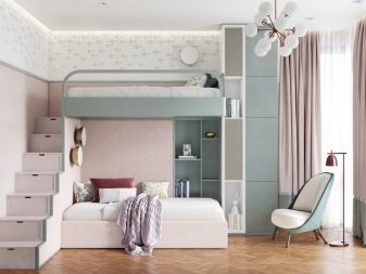 سرير بدورين يمكن أن تكون وحدة متنقلة ومدمجة مع دواليب وميزانين. تتمثل ميزة التصميم في أنه ، نظرًا لوقوعه على ارتفاع 1.5 متر ، فإنه يحرر مساحة في الجزء السفلي. يمكن أن تستوعب سطح مكتب وغرفة ملابس وتنظيم مكان للألعاب. هذه النماذج ذات صلة خاصة بغرف الأطفال.