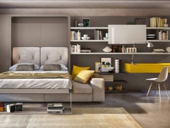 يعد تجهيز غرفة نوم كاملة في منطقة صغيرة مهمة شاقة. من الضروري ليس فقط مكان للنوم ، ولكن أيضًا التفكير في أنظمة تخزين أغطية السرير وخزانة الملابس. وإذا تم دمجه مع غرفة المعيشة؟ يعد الأثاث المدمج حلاً ممتازًا لجميع هذه المشكلات.