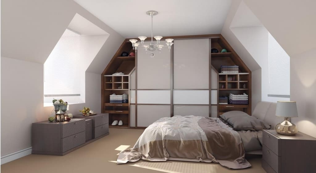 بفضل النهج الفردي مع الأثاث المدمج يمكنك ضبط المساحة والتخطيط السيئمثل الأعمدة البارزة أو أنابيب التهوية. إذا كانت الغرفة ذات شكل غير قياسي أو كانت علية ، فقد تنشأ أيضًا مشاكل عند وضع الأثاث القياسي.
