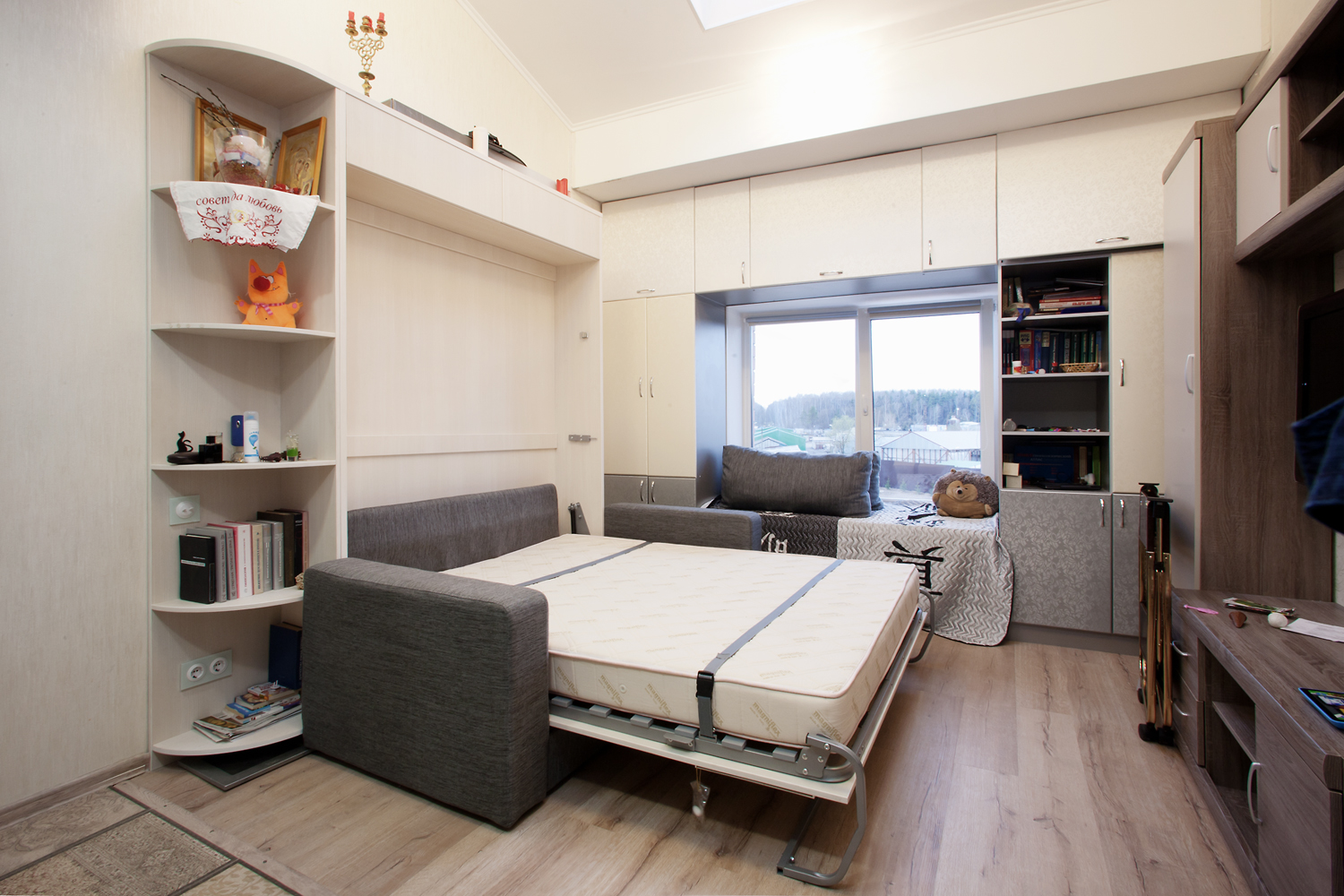 عند تطوير مشروع فردي ، يتم أخذ جميع ميزات الغرفة ، وموقع النوافذ ، والغرض من الغرفة ، بالإضافة إلى الرغبات والاحتياجات الفردية للمالكين في الاعتبار. هذا الأثاث مهم بشكل خاص في شقق الاستوديو. باستخدامه ، يمكنك تحديد المساحة واستخدام الأثاث المحول ، مما يجعل الغرفة متعددة الوظائف. على سبيل المثال ، خلال النهار ، الغرفة عبارة عن غرفة معيشة مريحة ، لكن الأمر يستحق خفض سرير الرفع ، مخفيًا في الخزانة أو خلف الأريكة ، حيث يتحول إلى غرفة نوم كاملة.