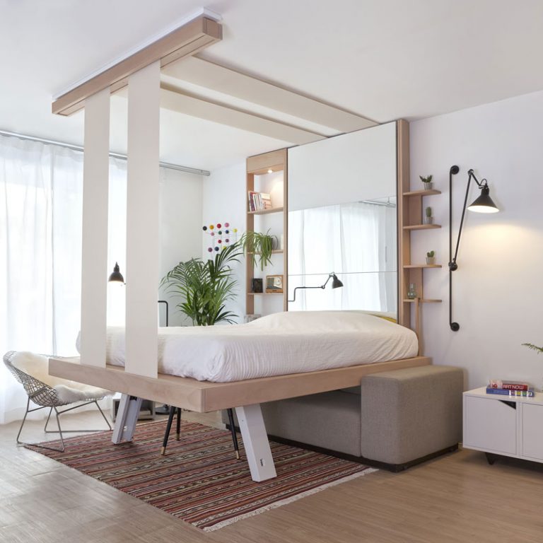 اعتمادًا على تصميم الغرفة ورغبات المالك ، يمكن بناء سرير أو خزانة ملابس أو طابق نصفي أو غرف تبديل ملابس أو قواطع في غرفة النوم. على سبيل المثال ، إذا كانت غرفة النوم تعمل أيضًا كغرفة معيشة ، فيمكنك وضع سرير مدمج وإخفائه أثناء النهار.