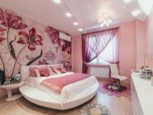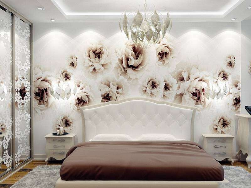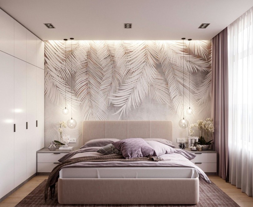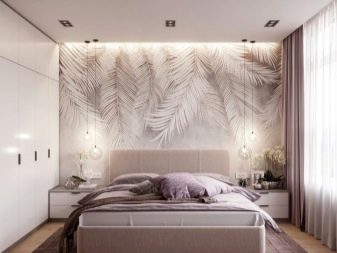 يعتمد نظام ألوان الصورة بشكل مباشر على الغرض من الغرفة والإضاءة. بالنسبة لغرفة النوم المشرقة ، فإن الظلال الرائعة - الأزرق والأخضر - هي الأنسب. للظلام - البيج والأبيض.