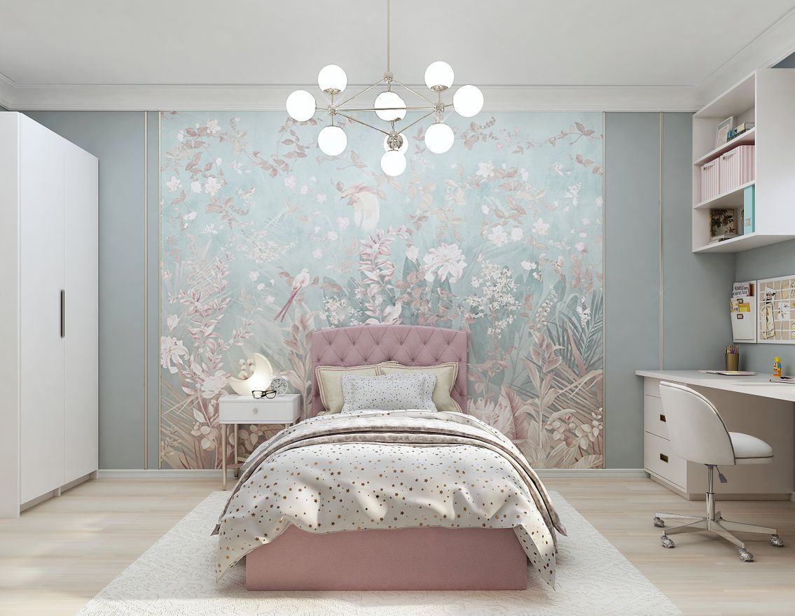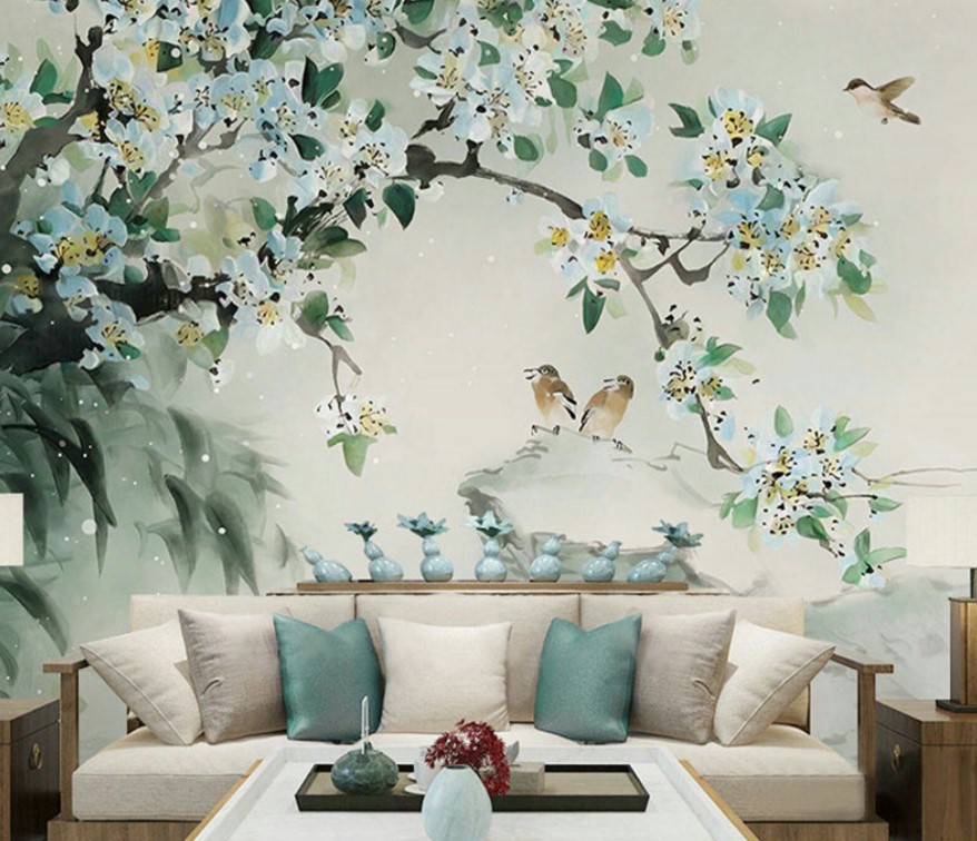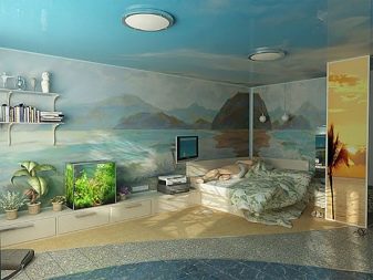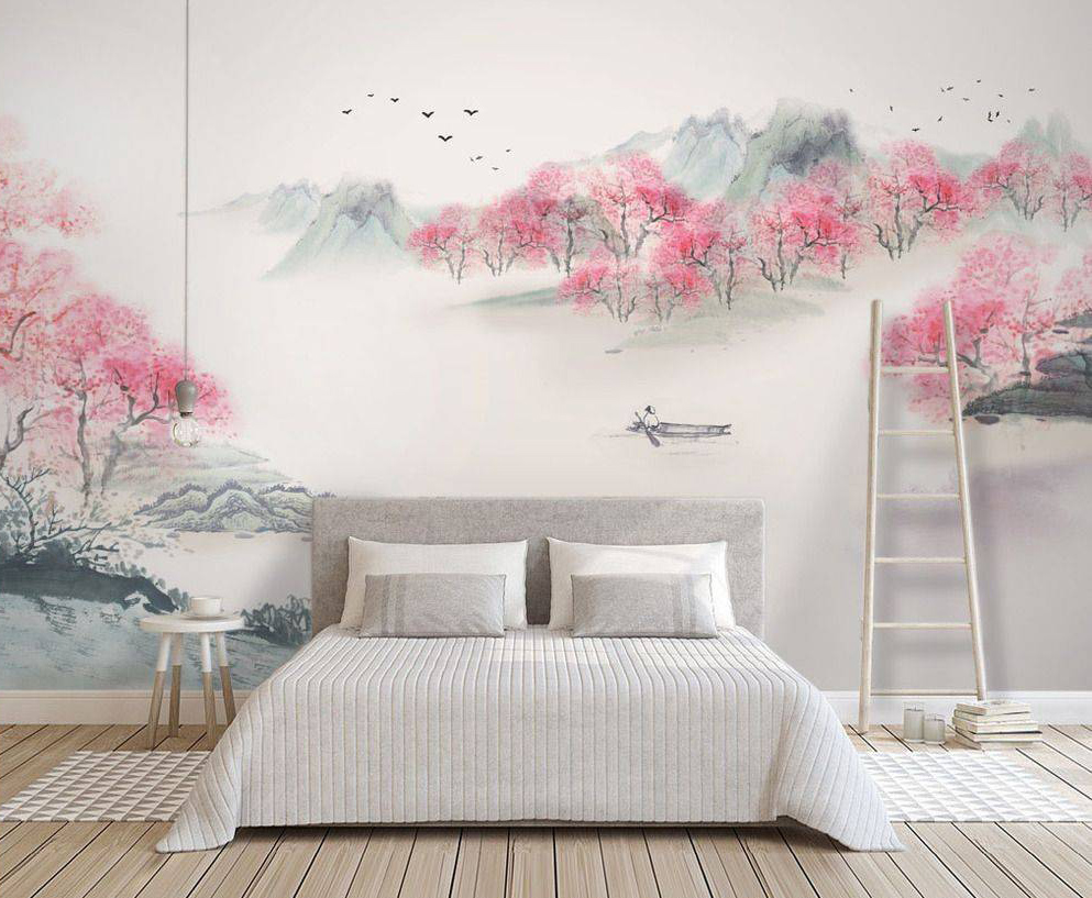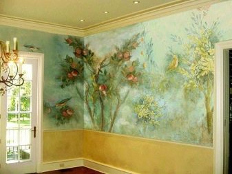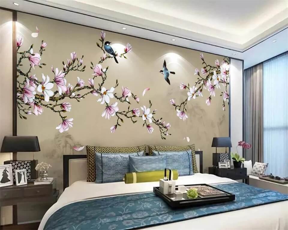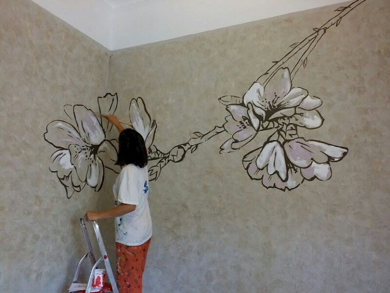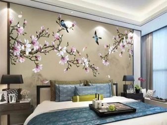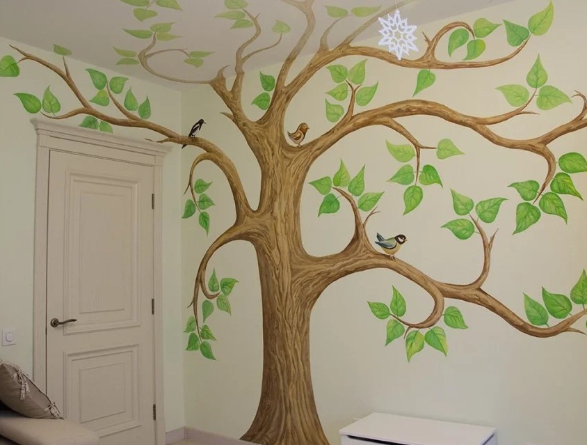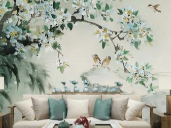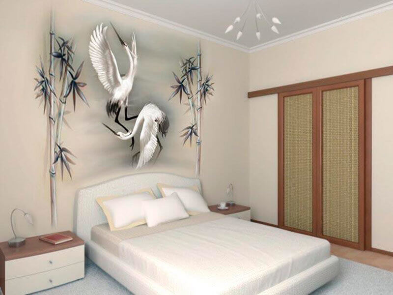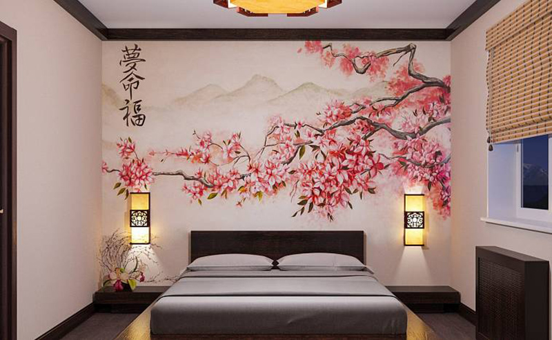 بالنسبة للغرفة ، فإن الرسومات على الطراز الياباني مناسبة: صور ساكورا أو الجبال. تبدو الصور المهدئة بأسلوب بحري رائعة أيضًا ، والرسم بالورود أو الأشجار. تبدو الجدران البيضاء المرسومة باليد رائعة وفريدة من نوعها.