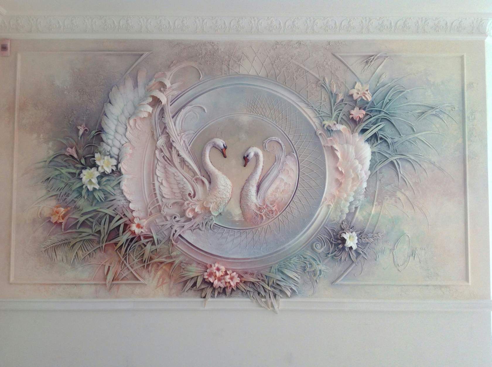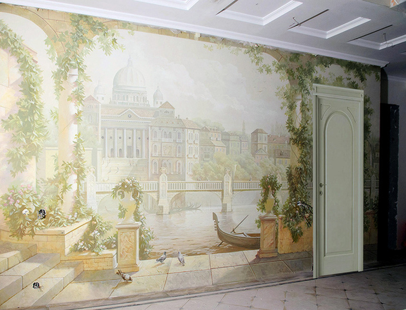 يتم تطبيق اللوحة على إغاثة معدة مسبقًا. تم إنشاؤه من قبل المتخصصين باستخدام الجص.