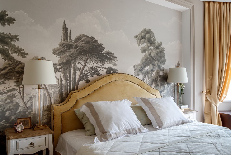سيكون أي رسم على الحائط في غرفة النوم فريدًا. تقنية التنفيذ والموضوعات والألوان - كل هذه هي السمات المميزة لكل لوحة. لن تكون الصورة المحددة بشكل صحيح هي الجزء المركزي من الداخل فحسب ، بل ستحدد أيضًا الحالة المزاجية المناسبة للغرفة.
