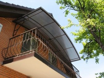 - بولي كربونات - هذا هو أفضل اختيار للمواد لإنشاء سقف فوق لوجيا. لديها أداء جيد وبأسعار معقولة. بفضل تنوع الألوان ، يمكن لكل مستهلك اختيار خياره الخاص لتشكيل مظهر خارجي فردي.