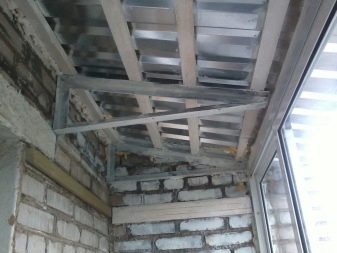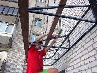 - على طول محيط لوجيا بالكامل ، قم بتثبيت أرفف خاصة مصنوعة من ملف تعريف (أنبوب مربع). يعني إنتاج الرفوف أنها مقطوعة بطول معين. في حالة وجود سقف مسطح ، ستكون التركيبات هي نفسها. خلاف ذلك ، ستكون الأعمدة الخلفية أطول من الأعمدة الأمامية.