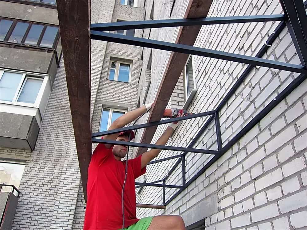 - معدن. الهيكل المعدني هو خيار غير مكلف وخفيف الوزن ودائم للأسقف. ومع ذلك ، سيكون من الضروري تجهيز عزل الصوت والحرارة. يفضل بعض مالكي الشقق المظلات المصنوعة من الحديد المطاوع ، وهي ليست عملية فحسب ، بل هي أيضًا أصلية في المظهر.